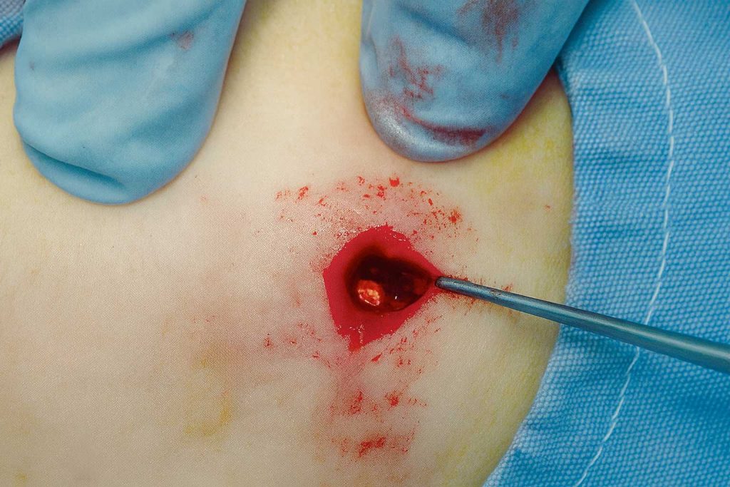 - Przygotowanie pola zabiegowego – dezynfekcja, oznaczenie miejsca implantacji.